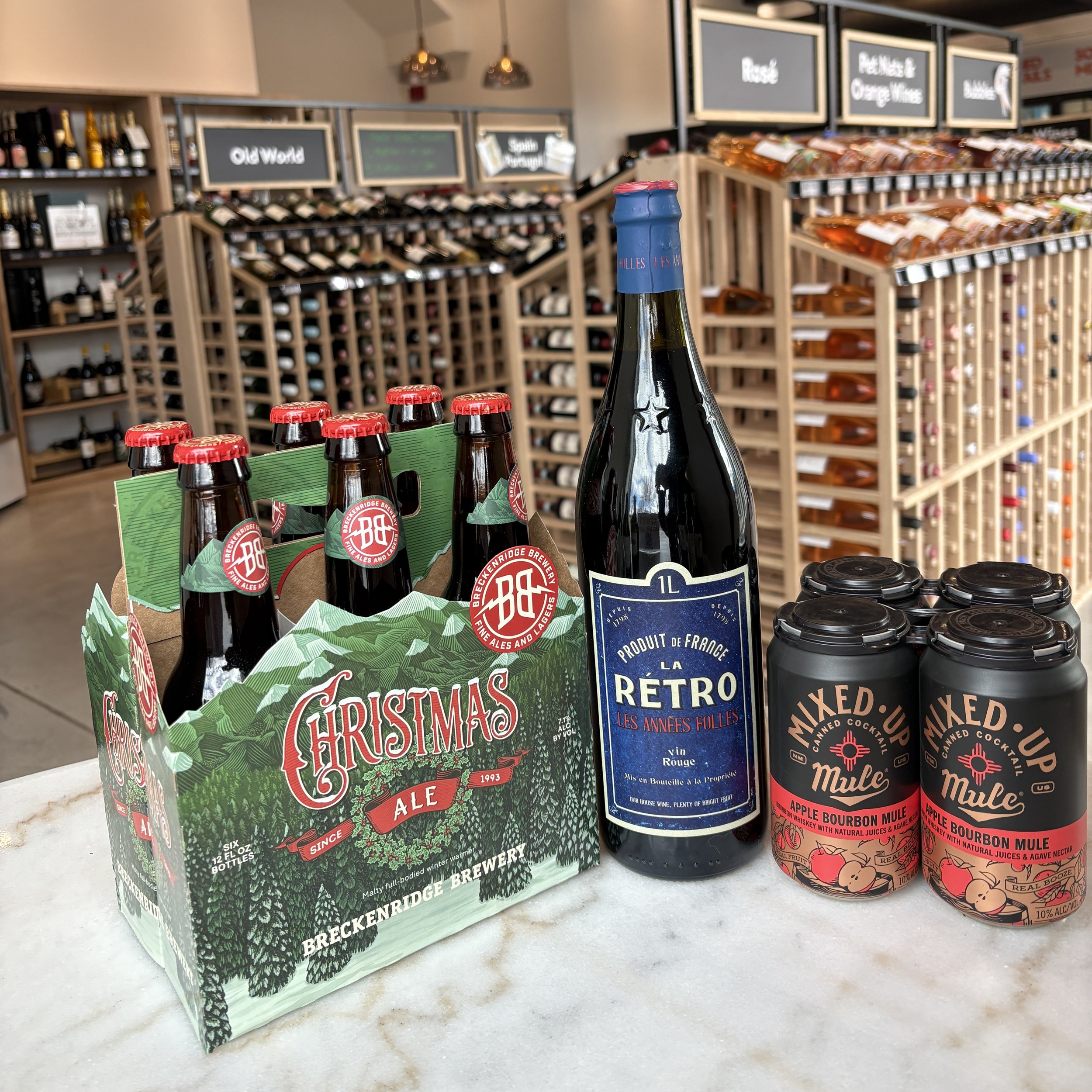 The Christmas Ale from Breckenridge Brewery is a Colorado winter warmer. We are head-over-heels for this ready-to-drink seasonal cocktail, the Mixed Up Apple Bourbon Mule. The Organic and Vegan La Retro Vin Rouge 1L, from France is a light, fresh, vibrant red wine, and it's on sale...just $20 while they last.
